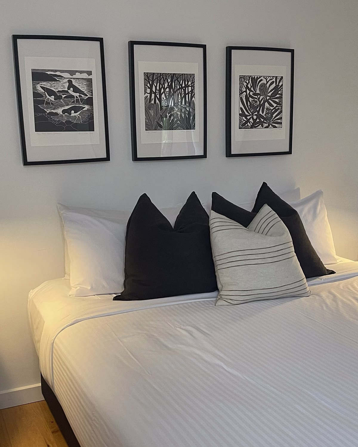 The air is a fresh tonic straight of the ocean at your doorstep. Waking up in the morning is quiet and un rushed where the rooms textured blinds hold back the early morning light. The only thing that breaks the silence is birds chirping nestled in the trees near the outside balcony and a distant pounding of the sea beyond the dunes which wakens the senses as a rush of fresh air diffuses into your lungs and brings you back to life.